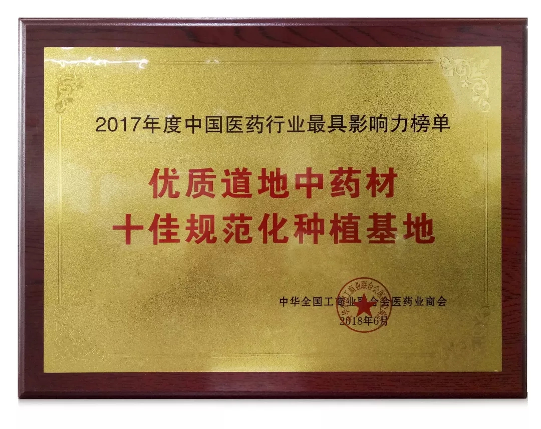 優(yōu)質(zhì)道地中藥材十佳規(guī)范化種植基地”