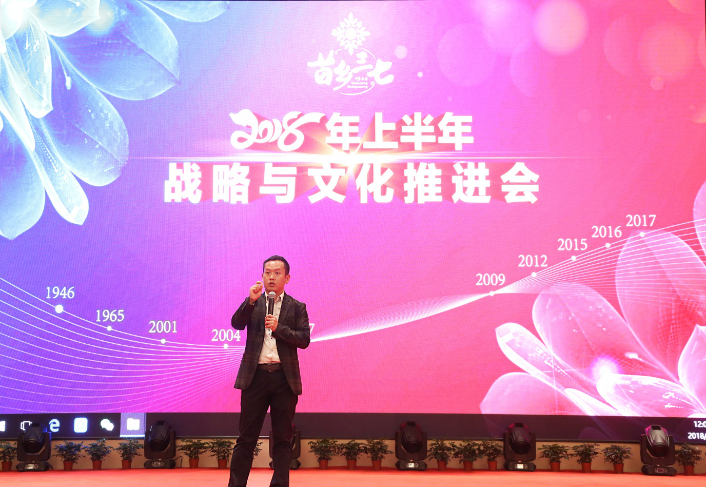 2018年3月7日,苗鄉(xiāng)三七自2011年啟動的一年一度“三七大會”在文山鳳凰錦江酒店正式拉開帷幕。各界嘉賓以及來自文山苗鄉(xiāng)三七股份有限公司、文山苗鄉(xiāng)三七科技有限公司、文山市苗鄉(xiāng)三七實業(yè)有限公司及文山市苗鄉(xiāng)三七實業(yè)有限公司昆明分公司的員工代表共400余人匯聚一堂,對公司的發(fā)展戰(zhàn)略與文化進行總結推進。